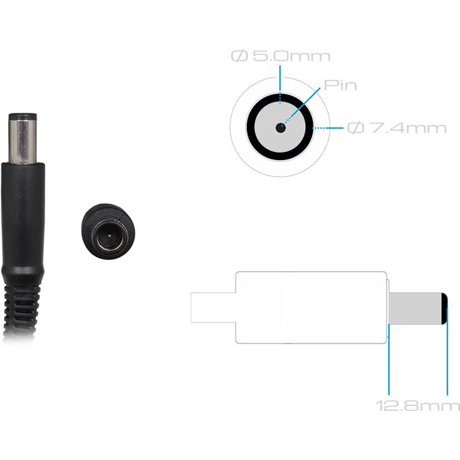 7,4 × 5,0 mm connector met center-pin – correcte herkenning door de laptop