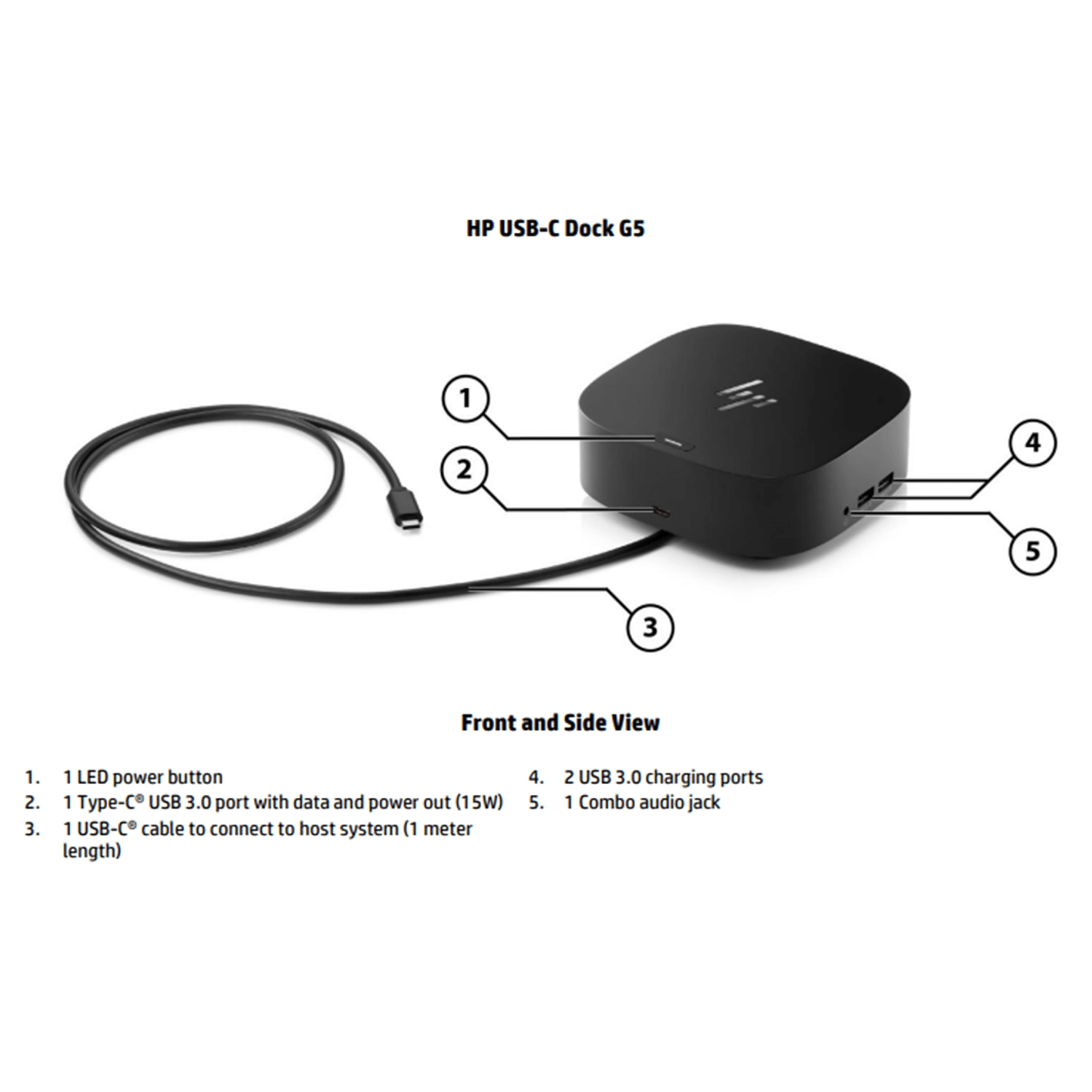 Met de meegeleverde 120 W voeding kan het dock je laptop tot maximaal 65 W opladen via Power Delivery, terwijl de rest van de energie wordt gebruikt voor aangesloten apparaten en randapparatuur. Dit maakt het dock geschikt voor een breed scala aan USB-C notebooks, zowel van HP als andere merken met USB-C- of Thunderbolt-ondersteuning.