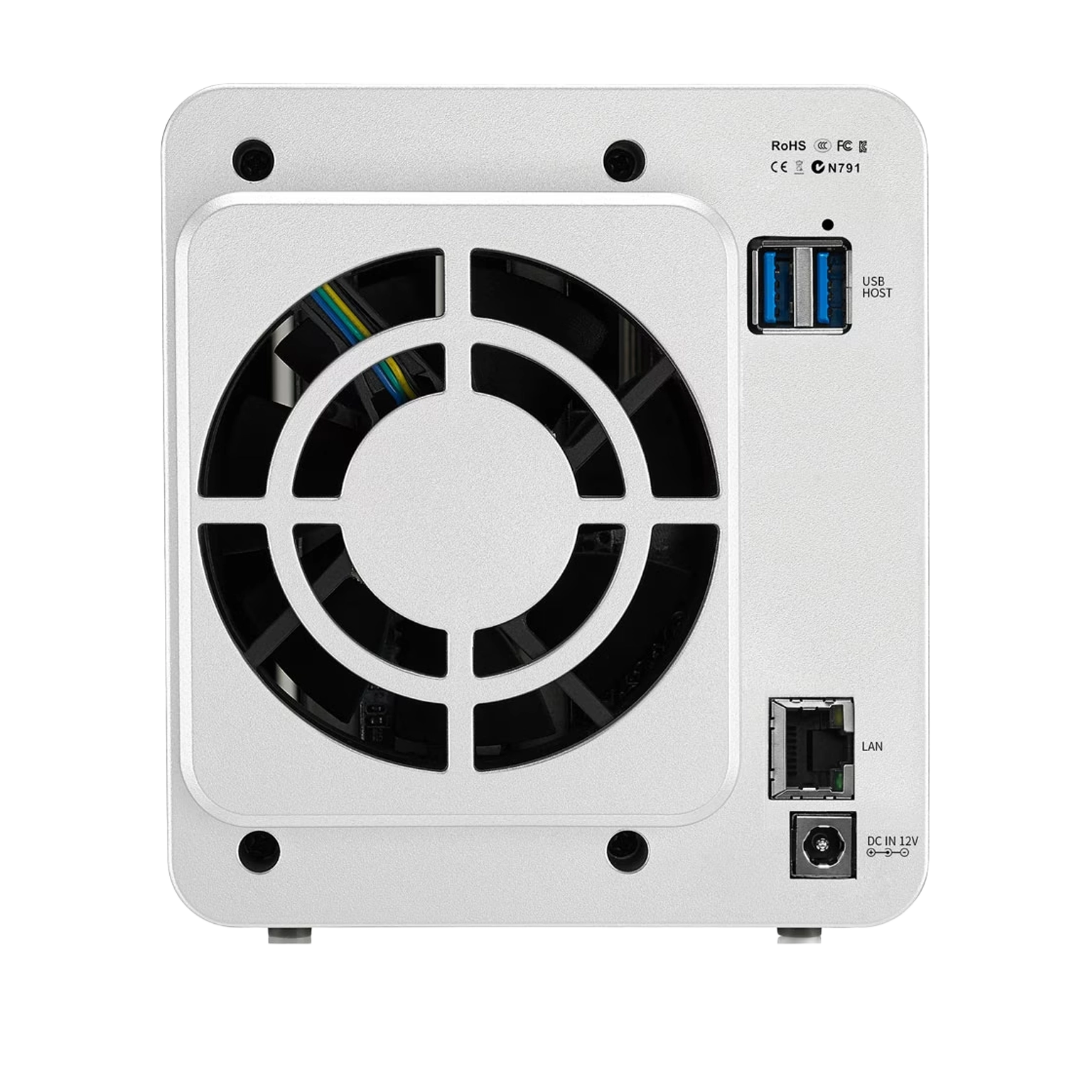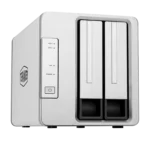 Met twee drive-bays ondersteunt het systeem 3.5″ en 2.5″ SATA HDD’s of SSD’s. Hierdoor kan een opslagcapaciteit tot ongeveer 32–36 TB worden gerealiseerd afhankelijk van de gebruikte schijven en RAID-configuratie.